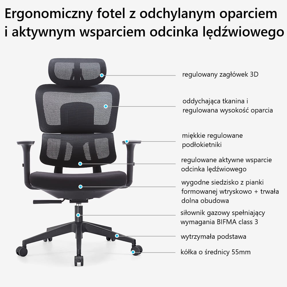 Idealne do pracy przy biurku przez wiele godzin. To świetny wybór zarówno do małych biur, jak i większych przestrzeni typu open space.